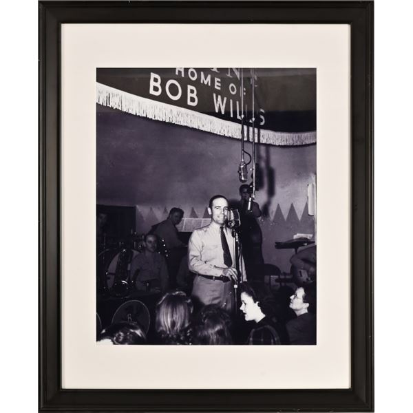 Photo of Bob standing at the Microphone from Cain's Ballroom in Tulsa, OK. 27.5 X 37.5 Inches From Ray Benson's personal collection.