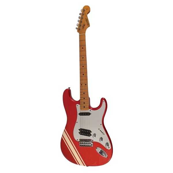 1980s Daion Performer (Stratocaster Style) maple neck, red sparkle body with single coil neck pickup, Humbucking Bridge pickup. 3-way switch with volu