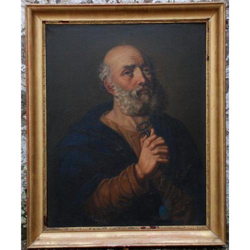 DESCRIPTION: THE REPENTANT OF SAINT PETER, MASTERPIECE OF XIX CENTURY. This painting depicts St Peter, Peter was leader of the Twelve Apostles and one of the closest to Christ. His life divides into three parts: he accompanied Christ during his ministry; after the crucifixion he led the apostles in their teaching of the gospel (the Acts); according to several early accounts, he went to Rome where he established the first Christian community and was crucified by Nero in A.D. 64. His appearance has remained remarkably constant in art and he is the most immediately recognizable of the apostles. The saint is always shown with white hair and beard, and he often wears his yellow cloak over a blue tunic. In this painting St Peter raises his tear-filled eyes to Heaven, his hands joined in prayer. Peter died a martyr's death at a great age. Our artist emphasizes apostle's age in his picture, skilfully revealing his elderly body. Peter's face, worked in thick paint, and his wispy grey hair are placed most fully in the light and stand out boldly from the almost dark, diffuse background. A dark background emphasizes this moment of repentant of the Saint and gives strong emotion to the viewer. Lion Ailè Art is glad to show you a touching masterpiece of XIX century, a composition that is able to create a perfect correspondence between soul and paintbrush.