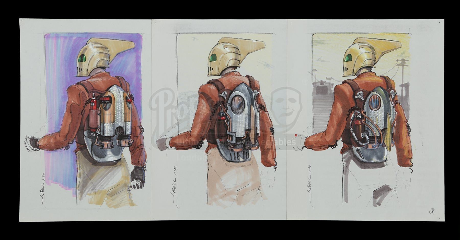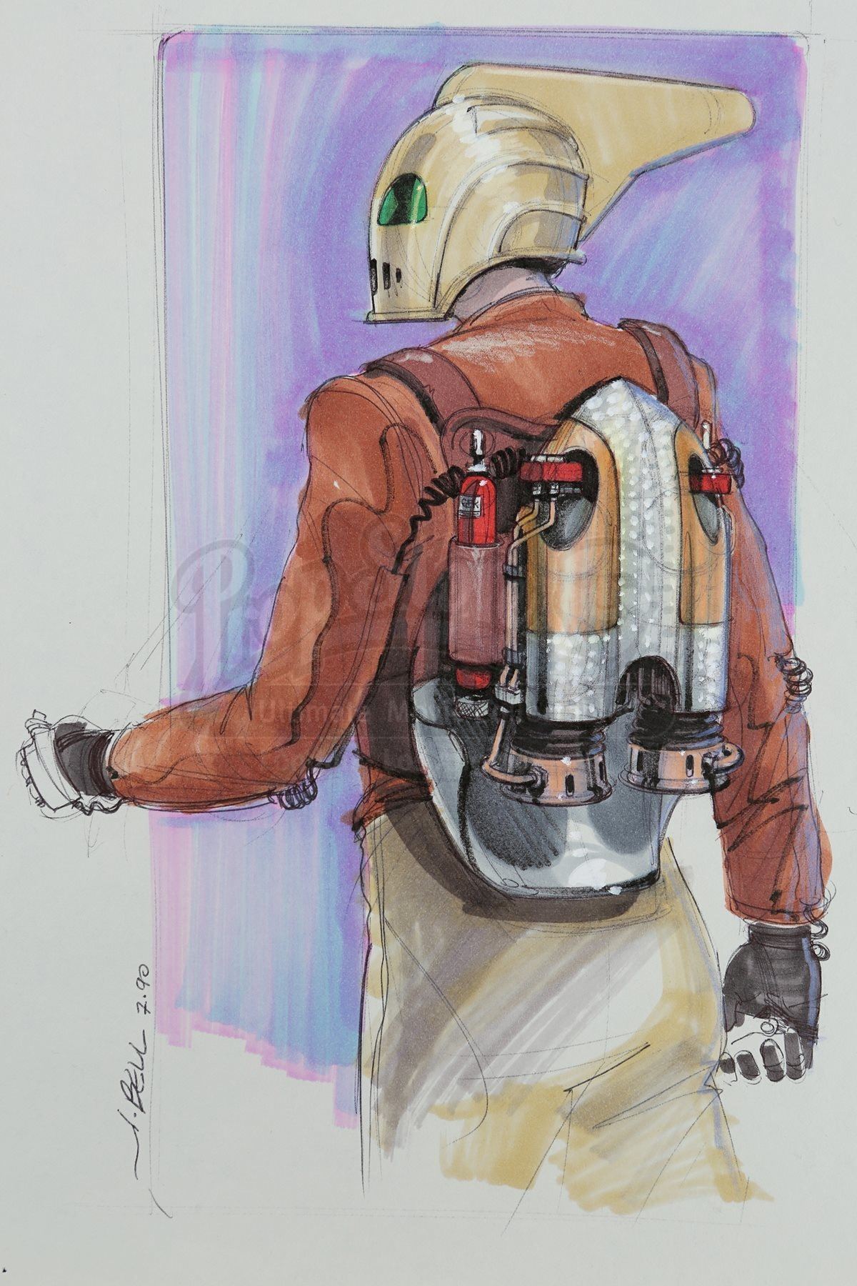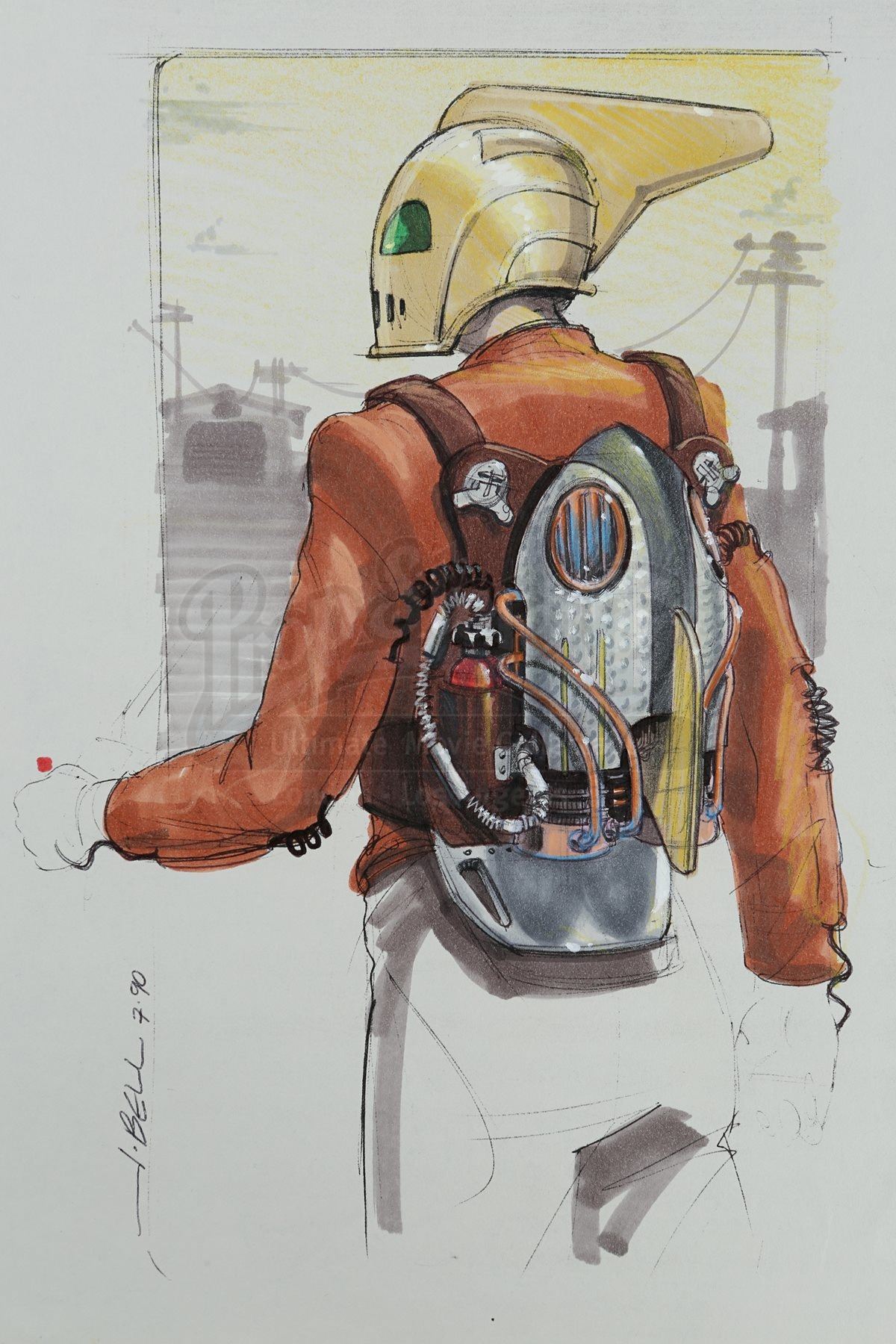 THE ROCKETEER (1991) - John Bell Hand-Coloured and Modified Rocketeer Concept Artwork