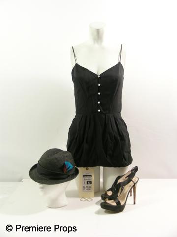 The Roommate (2011). This is Sara Matthews' (Minka Kelly) hero ensemble. It includes a black 'Myre' dress, black 'Victor Osborne' hat, pear shaped earrings, and black leather platform Elie Tahari' stilettos. Includes costume department wardrobe tag!