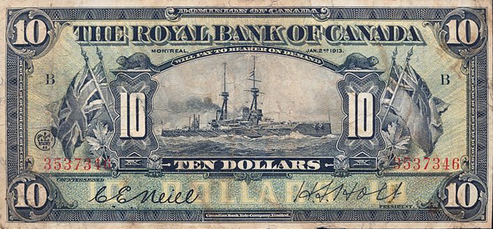 THE ROYAL BANK OF CANADA. $10.00. Jan. 2, 1913. CH-630-12-08. No. 3537346/B. Neil, left. PMG graded