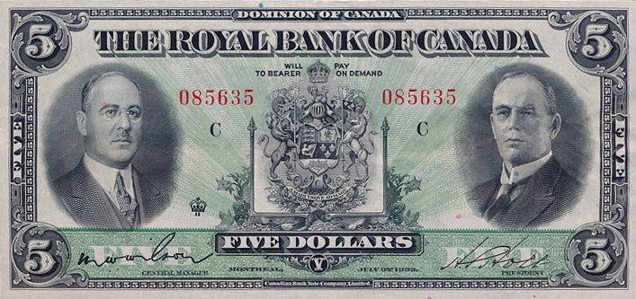 THE ROYAL BANK OF CANADA. $5.00. July 3, 1933. No. 085635/C. CH-630-16-02. PMG graded Extra Fine-40.