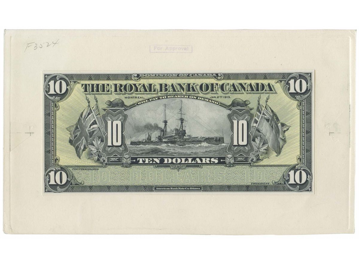 $10.00. Jan. 2, 1913. CH-630-12-08. A full colour Face Proof on a large (5 1/2" x 9") approval card. Lower '10 Dollars' at signature area in dark tint. Pristine.