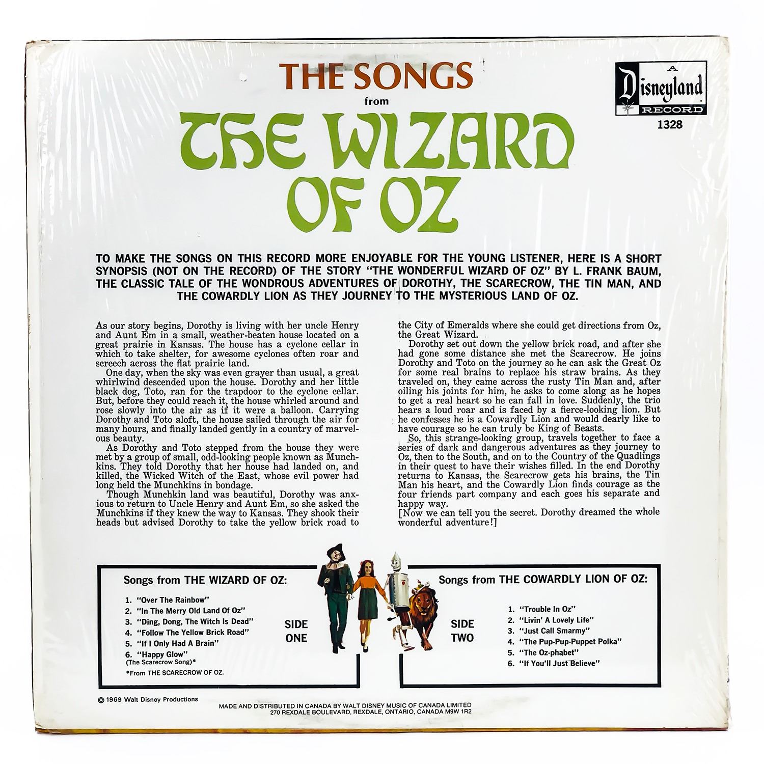 #9596 - VINYL LP RECORD ALBUM, THE SONGS FROM THE WIZARD OF OZ PLUS SONGS ABOUT THE SCARECROW AND THE COWARDLY LION, CHILDREN’S, STAGE & SCREEN, THEME, SCORE, POLKA, MUSICAL, DISNEYLAND RECORDS 1328***ITEM(S) LOCATED IN LETHBRIDGE ALBERTA. ALL ITEMS IN THIS AUCTION QUALIFY FOR OUR FREE TRANSPORT TO EDMONTON SERVICE. WORLDWIDE SHIPPING AVAILABLE