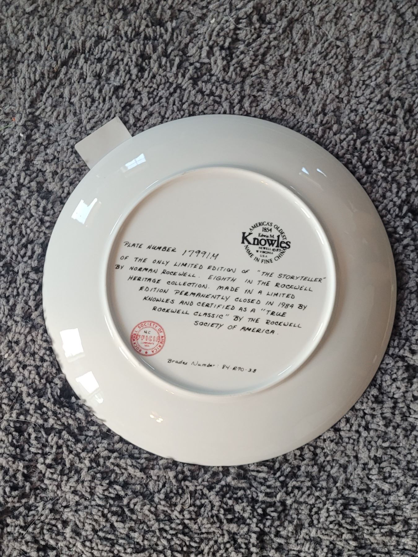 THE STORYTELLER NORMAN ROCKWELL COLLECTOR PLATE WITH COA.
