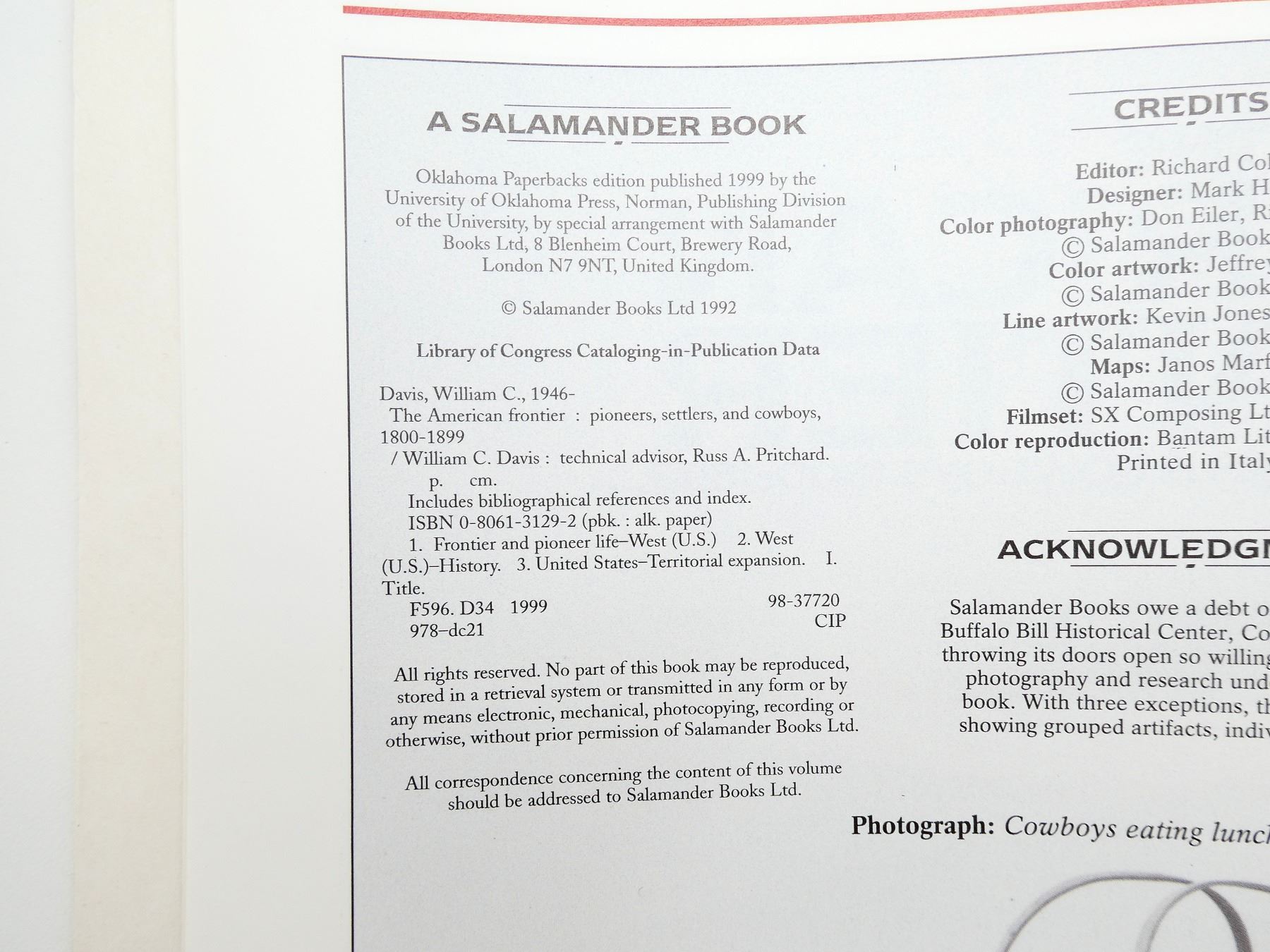 LOT INCLUDES; (1) "THE TAMING OF THE WEST, AGE OF THE GUNFIGHTER" BOOK BY JOSEPH G. ROSA, HARD COVER WITH DUST COVER, ISBN: 0-8317-0381-4 & (1) "THE AMERICAN FRONTIER, PIONEERS, SETTLERS, AND COWBOYS 1800-1899" BOOK BY WILLIAM C. DAVIS, SOFT COVER, ISBN: 0-8061-3129-2. SEE PHOTOS.