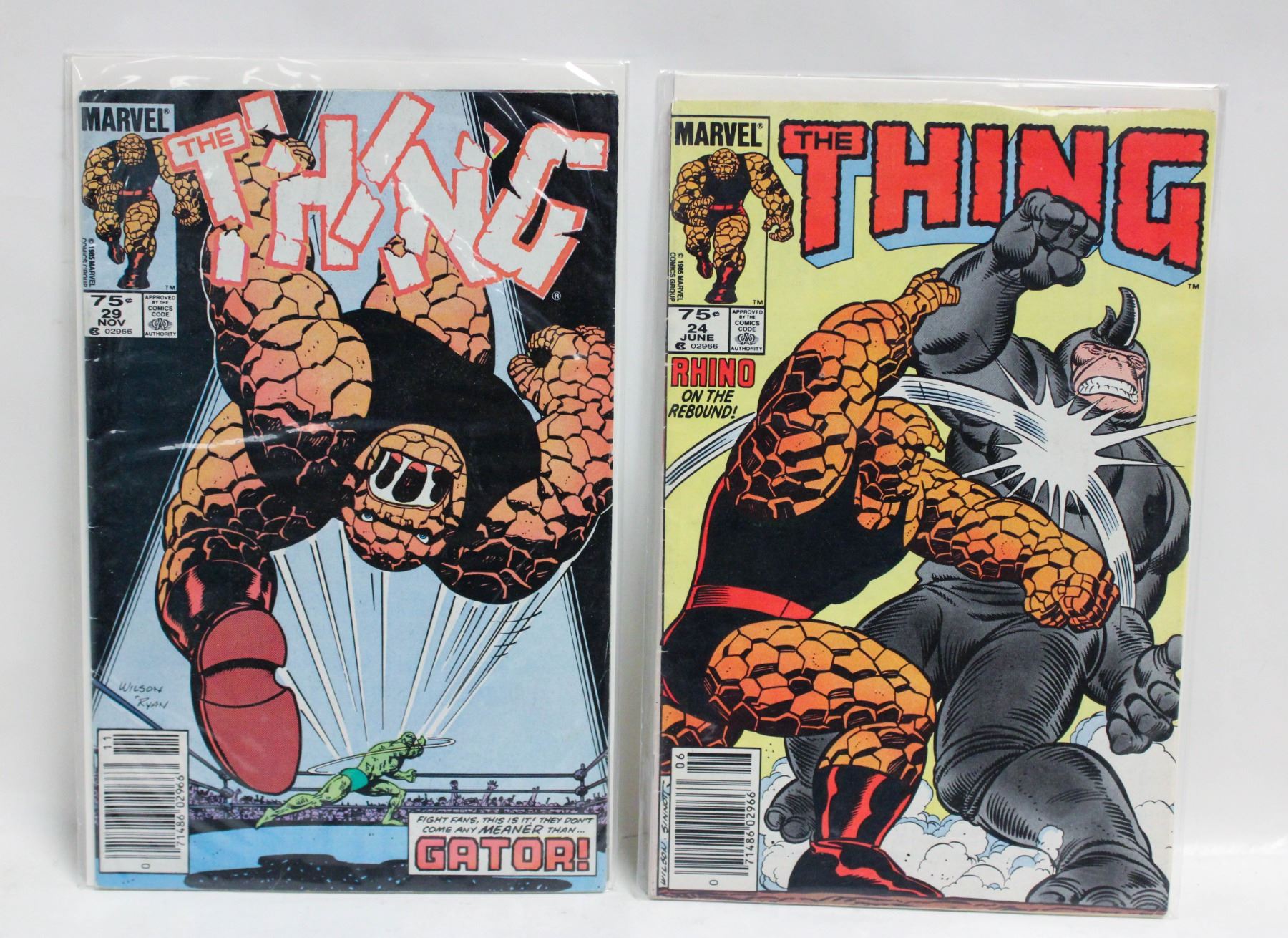 DEATH OF MIRACLE MAN; 1ST APPEARANCE OF GATOR GRANT; CLASSIC THING VS. RHINO BATTLE; CANADIAN PRICE VARIANT; NEWSSTAND EDITION