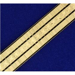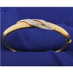 In 14k yellow gold. Bangle has beautiful engraving and a safety chain. Inside diameter of 2 3/8" and hinges open for easy putting on and off. 1...