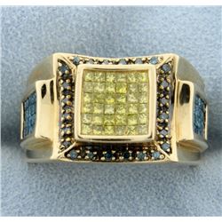 In 14K yellow gold. Contains a high quality .2 ct round brilliant cut diamond surrounded by six .1ct, two .03ct, and six .02ct diamonds. Diamonds are