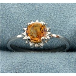 14K white gold, the center diamond is .45ct, surrounded by ten .03ct diamonds, all SI clarity, G color. The diamonds are a great cut and sparkle. Siz