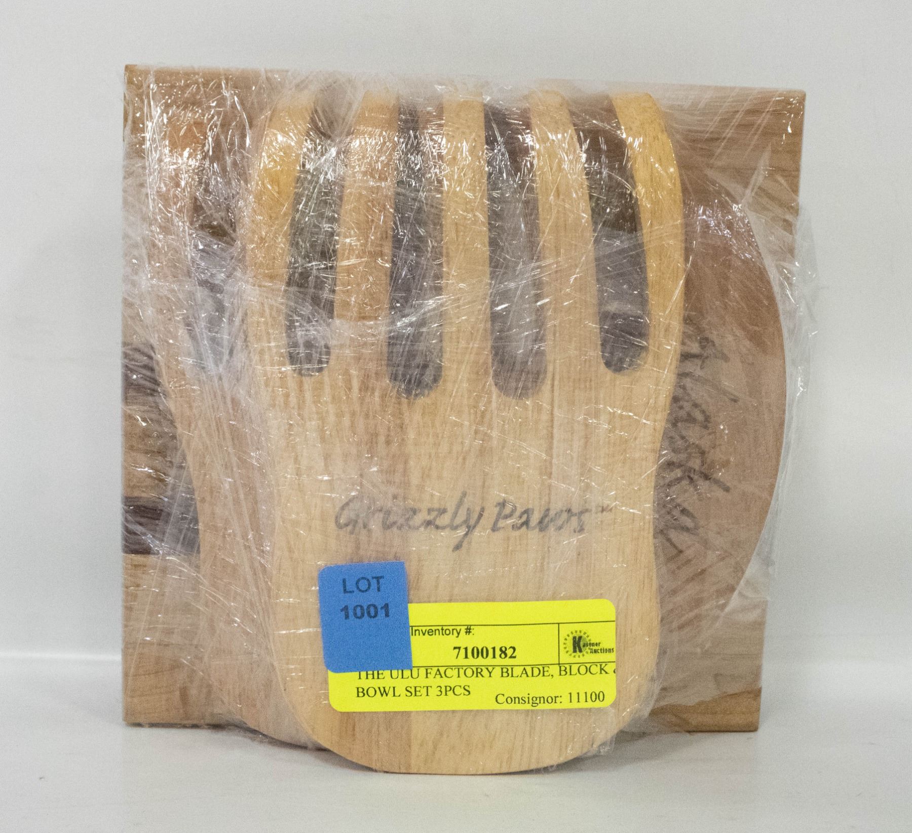 "ALASKA" ULU KNIFE, "GRIZZLY PAWS" MEAT CLAWS, PRESSED CARVING BOWL. **ALL ITEMS MUST BE REMOVED BY 5PM SATURDAY, NOVEMBER 15TH 2025. ALL REMAINING ITEMS WILL BE SUBJECT TO A $6.00 PER DAY STORAGE CHARGE. ANY ITEMS REMAINING AFTER MONDAY, DECEMBER 1ST 2025 WILL BE CONSIDERED FORFEITED. NO REFUNDS WILL BE ISSUED FOR FORFEITED ITEMS. TO SCHEDULE A PICK UP APPOINTMENT CLICK HERE