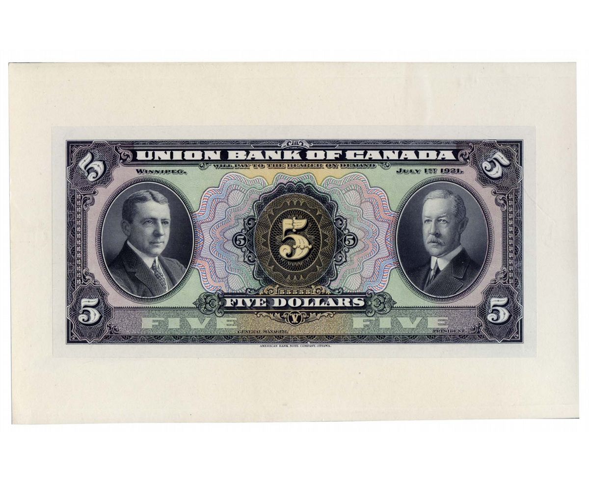 $5.00. July 1, 1921. CH-730-20-02P. A full colour Face Proof on a large (5-1/4" x 8-1/2") card. Pristine.