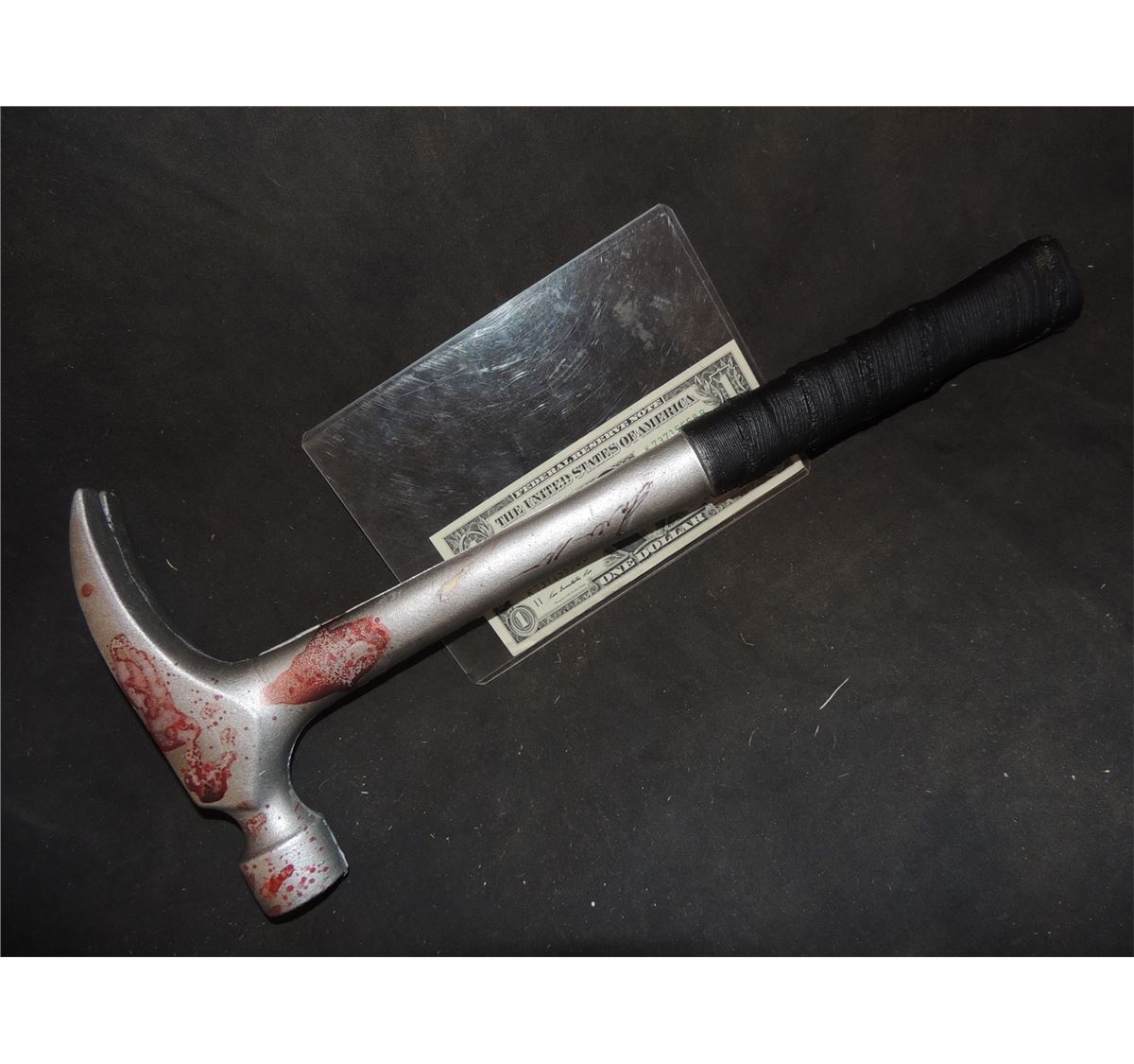 Screen Used Stunt Hammer from THE WALKING DEAD used by TYREESE WILLIAMS [Chad L. Coleman]! Still has blood on it from it's final use, and I believe that is his signature along the shaft.