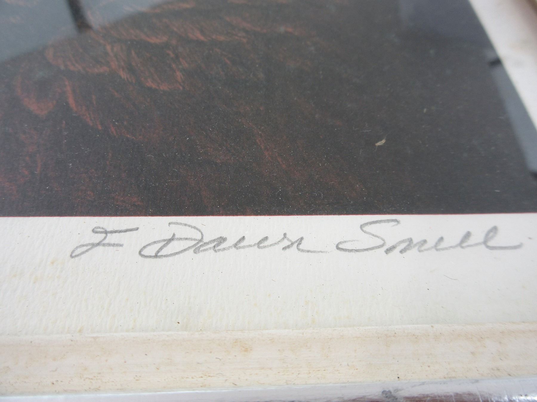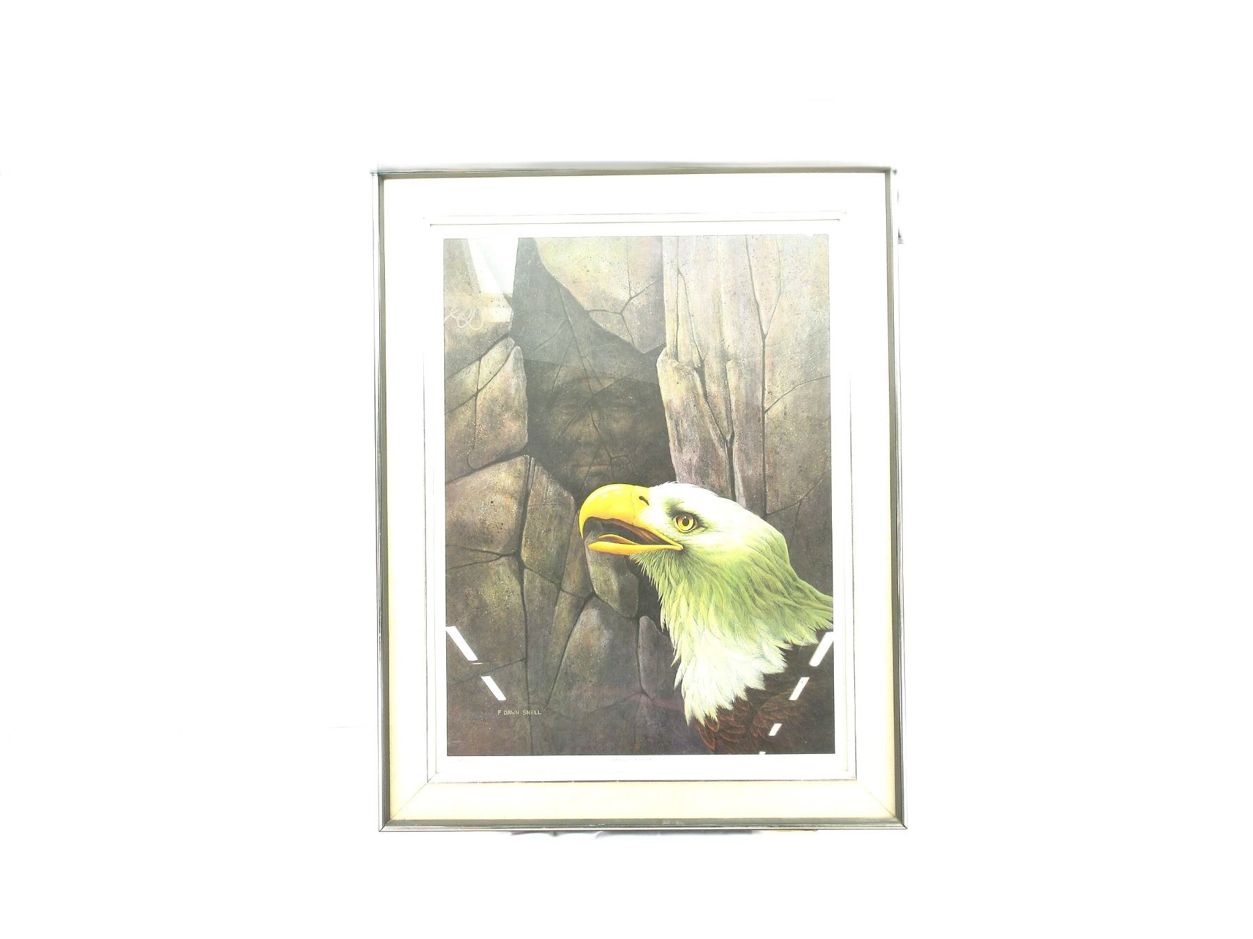 (1) FRAMED UNDER GLASS "THE WARRIORS" BALD EAGLE PRINT BY F. DAWN SNELL, SIGNED BY ARTIST, #96/225, APPROX. 29" X 30.5". SEE PHOTOS. *NO GUARANTEE ON GLASS FOR SHIPPING*