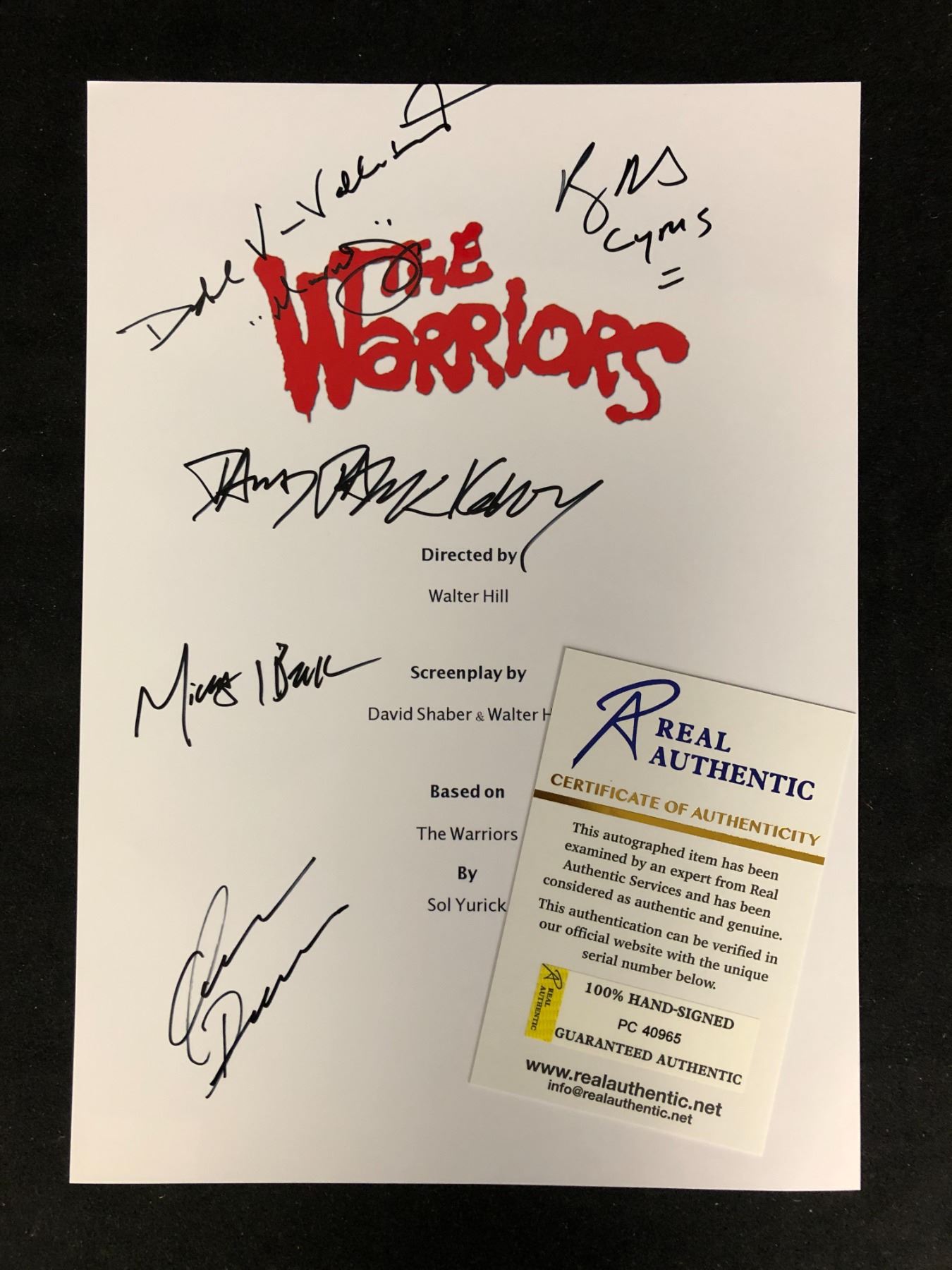 Autograph Includes: Roger Hill, David Patrick Kelly, James Remar, Deborah Van Valkenburgh, Michael Beck