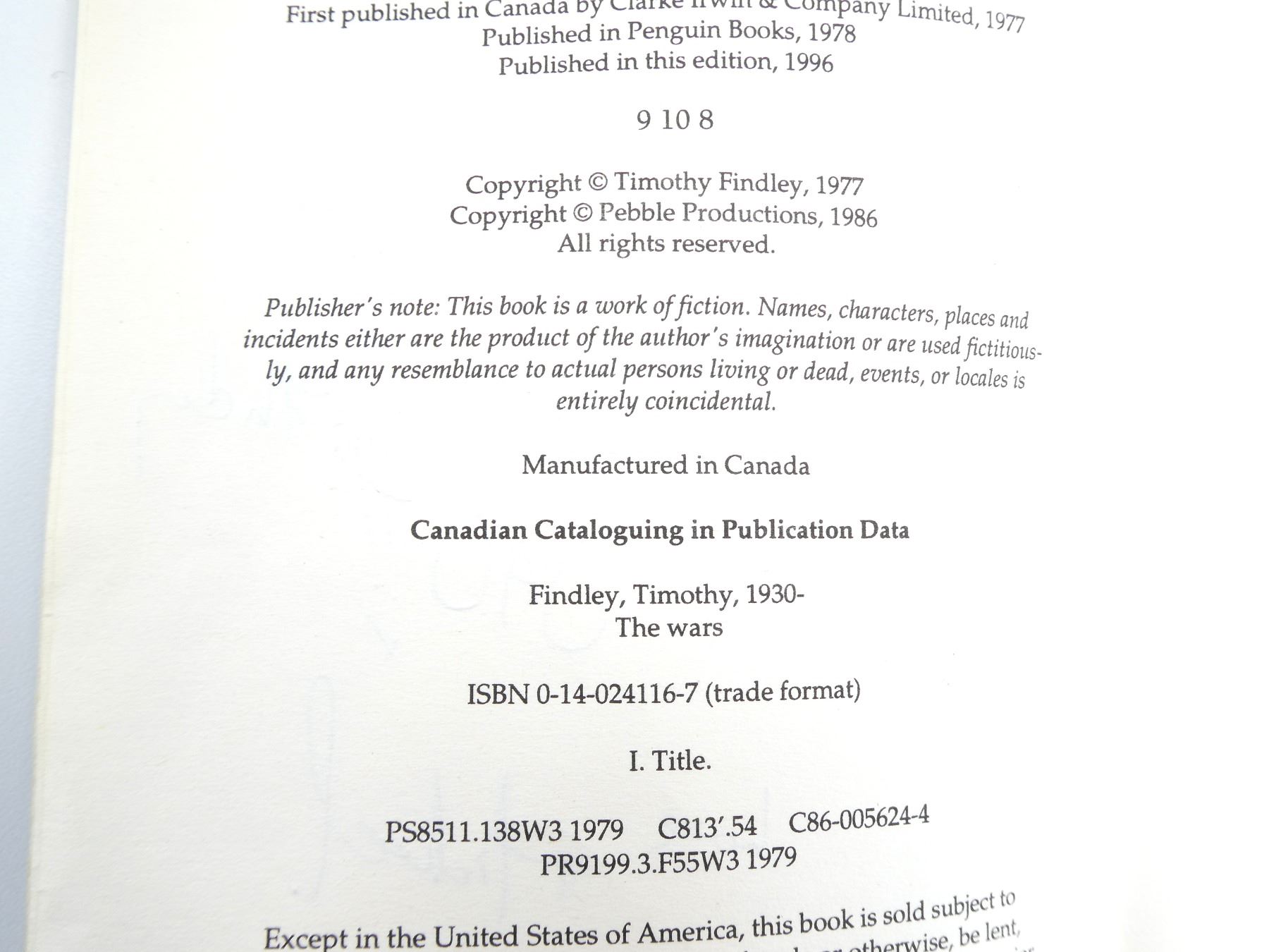 (1) BY TIMOTHY FINDLEY, SOFT COVER, ISBN: 0-14-24116-7. SEE PHOTOS.