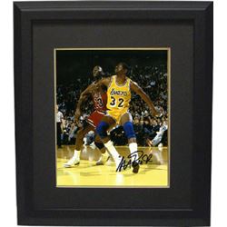 Magic Johnson Signed Los Angeles Lakers 8X10 Photo Custom Framed (Yellow Jersey Block Out Rebound Ve
