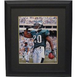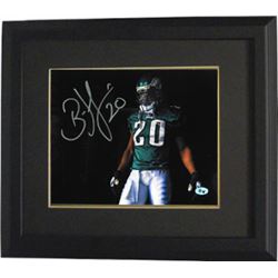 Brian Dawkins Signed Philadelphia Eagles 8X10 Photo Custom Framed #20 (Horizontal-Green Jersey-W/Vis