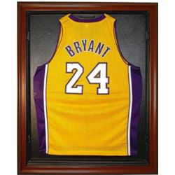 Mahogany Jersey case, cabinet style with removable frame. Easily hangs on any wall for beautiful display. An awesome way to display your full size foo
