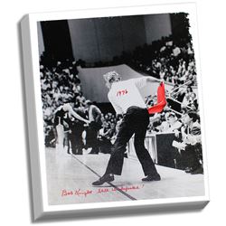 Bob Knight Throwing Chair B&W W/ Red Chair 22X26 Canvas W/ "1976, Still Undefeated" Insc