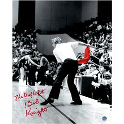 Bob Knight Signed Throwing Chair B&W w/ Red Chair 8x10 Photo w/ "The Ref Left" Insc.