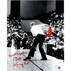 Bob Knight Signed Throwing Chair B&W w/ Red Chair 8x10 Photo w/ "To The Ref" Insc.
