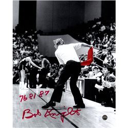 Bob Knight Signed Throwing Chair B&W w/ Red Chair 8x10 Photo w/ "76, 81, 87" Insc.