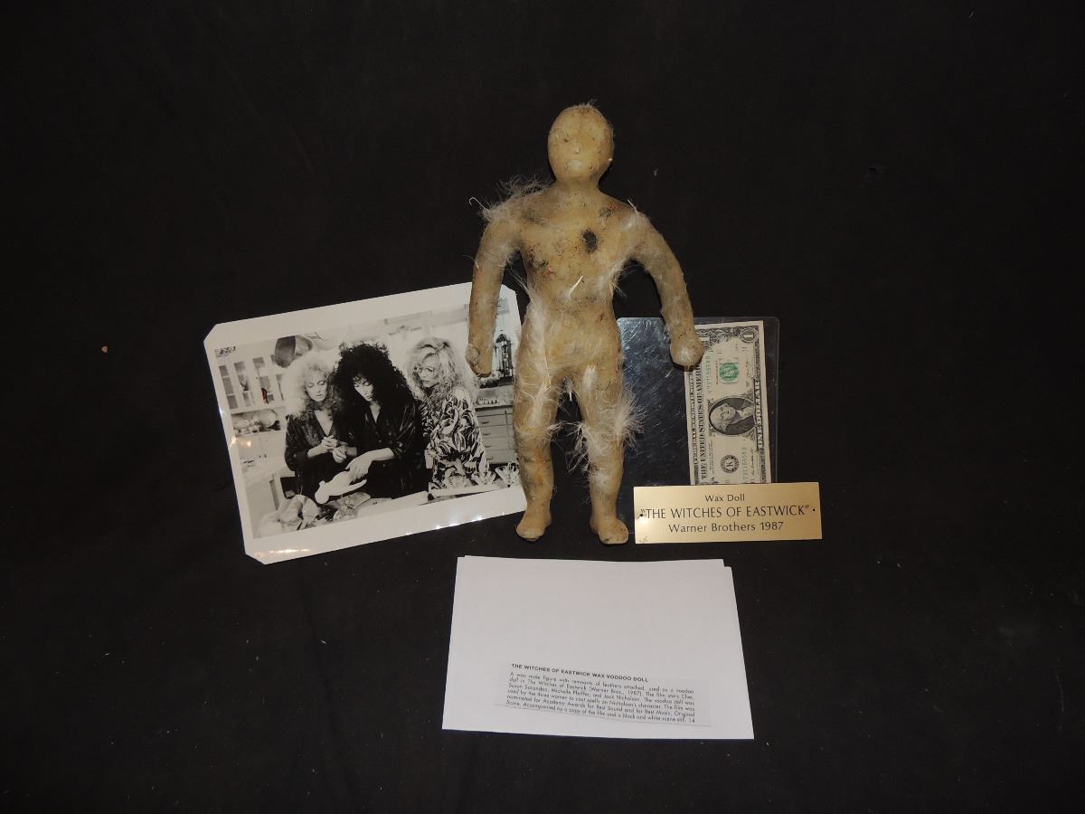 This is the SCREEN USED AND MATCHED HERO Wax Voodoo Doll from the 1987 Comedy Classic THE WITCHES OF EASTWICK starring JACK NICHOLSON, CHER, MICHELLE PFEIFFER, SUSAN SARANDON, and ANGELA CARTWRIGHT, with the incredible score by the Legendary JOHN WILLIAMS, the greatest film score composer of all time. The fact that this even exists is a miracle after nearly 30 years!