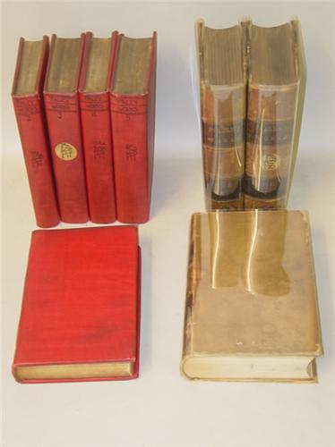 THE WORKS OF.... A Group of 8 Volumes as Listed. 8vo - over 7¾" - 9¾" tall. Hard Cover. Ex-Library. Good to Very Good condition. ***The Complete Works of the Rev. Andrew Fuller: With a Memoir of His Life by Andrew Gunton Fuller. Reprinted from the Third London Edition, revised with additions by Joseph Belcher - in 3 Volumes (1845) Philadelphia: American Baptist Publication Society. Leather bound with raised bands on spine, black leather spine labels, in protective mylar jackets. Two hinges taped, all bindings tight, engraved frontis with tg in Vol. 1. ***The Works of William Paley, D.D. in Five Volumes, with a Memoir of His Life by G.W. Meadley (1810-1812) Boston: Farrand, Mallory and Co. All bound in leather, but covered in a protective library cloth. Frontis in Vol. I, occasional damp mark, bindings tight.