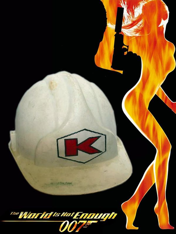 This is a screen used King Industries hard hat from the James Bond action film THE WORLD IS NOT ENOUGH.