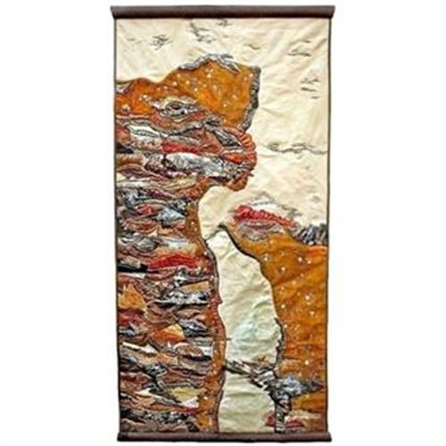 Unique Art Wall Tapestry in Leather & Silk by Hermina Csata -- certain to become a valued art collector's treasure!</em></td>