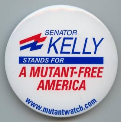 THE X-MEN SENATOR KELLY FOR A MUTANT FREE AMERICA CAMPAIGN BADGE