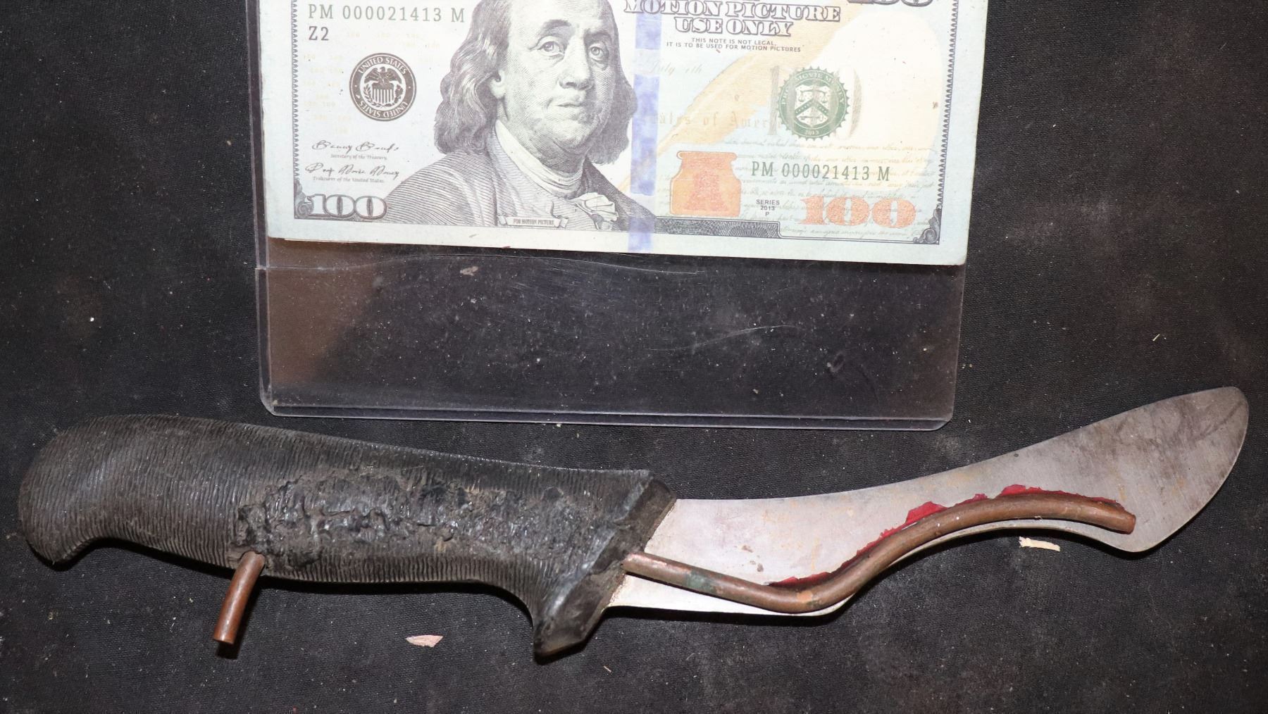 THE ZERO BOYS THROAT SLASH KNIFE WITH BLOOD RIG SCREEN USED!
