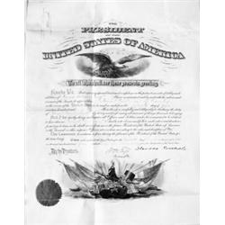 THEODORE ROOSEVELT: (1858 - 1919) Twenty-sixth President of the United States who started the Panama Canal, settled the Russo-Japanese War, broke up Standard Oil and encouraged conservation. Partly-printed D.S. "Theodore Roosevelt" as President, 1p. folio parchment, Washington, Dec. 20, 1904, a promotion of Innis Palmer Swift to the rank of Second Lieutenant of Cavalry. Co-signed by Secretary of War and future President WILLIAM H. TAFT. An excellent example of a scarce document, bearing perfect signatures of Taft and Roosevelt unaffected by the typical folds present. Certainly suitable for framing. $1,000-1,500