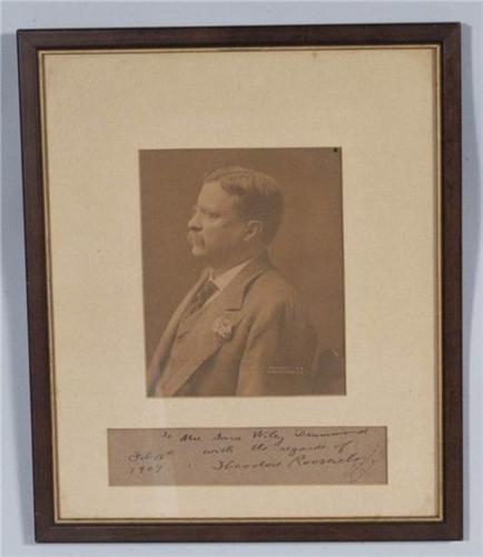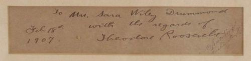 THEODORE ROOSEVELT AUTOGRAPH a matted cut signature together with a photographic print, early 20th century, CONDITION: very good bold signature as inspected, but not inspected out of frame. PACKING AND SHIPPING BY FAIRFIELD AUCTION WITHIN CONTINENTAL USA (excluding insurance) $30,