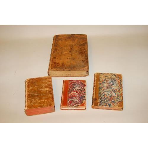 THEOLOGY. A Group of 4 Volumes as Listed. Hard Cover. Ex-Library. ***A Collection of Hymns of the Children of God in all Ages, From the Beginning till Now. In Two Parts. Designed Chiefly for the Use of the Congregations in Union with the Brethren's Church (1754) London. 2 parts in 1 volume. 12mo, bound in leather, raised bands on spine, front cover detached, back cover loose, backstrip chips. Binding tight. ***Sermons by Arch-Bishop John Tillotson - 1 volume only, begins with Sermon CV. (circa 1800). Lacks title page to page 2. Handwritten index in back. Folio, bound in leather with raised bands on spine. Binding tight, occasional damp mark. ***Satires by Joseph Hall, with additional Notes by Samuel Weller Singer (1824) Chiswick: Printed by C. Whittingham for R. Triphook. 12mo in 3/4 leather & marbled paper, raised bands on spine, frontis, occasional foxing, binding tight. ***Sermons to Asses, to Doctors in Divinity, to Lords Spiritual, and to Ministers of State by the Late Rev. James Murray - 5 parts in 1 volume (1817-1819) London: Printed for William Hone. 8vo, bound in 3/4 leather & marbled paper, raised bands on spine, frontis & title vignette, binding tight.