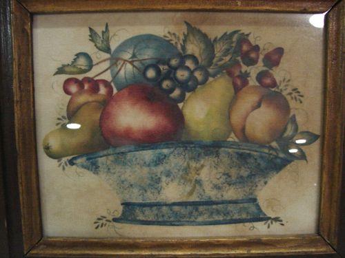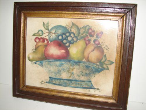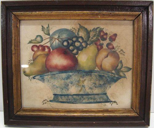 FRAMED 19TH CENTURY STILL LIFE THEOREM. Painting on velvet. Depicts fruit in bowl. 12” x 10” framed.