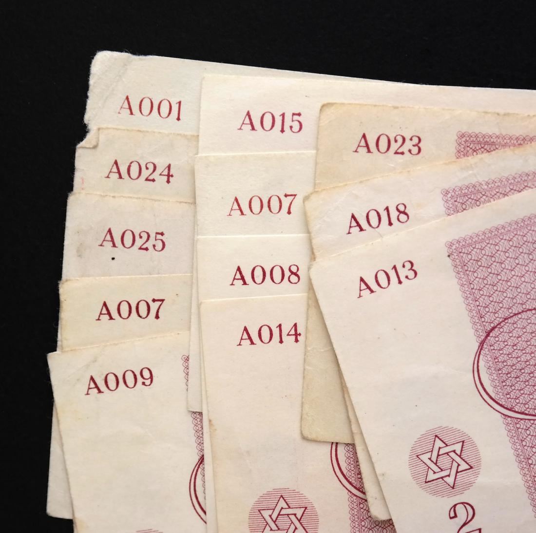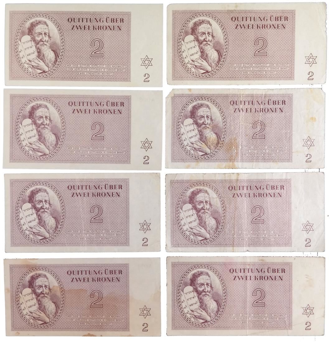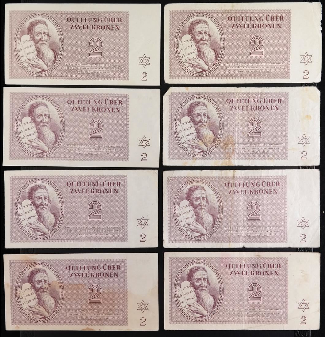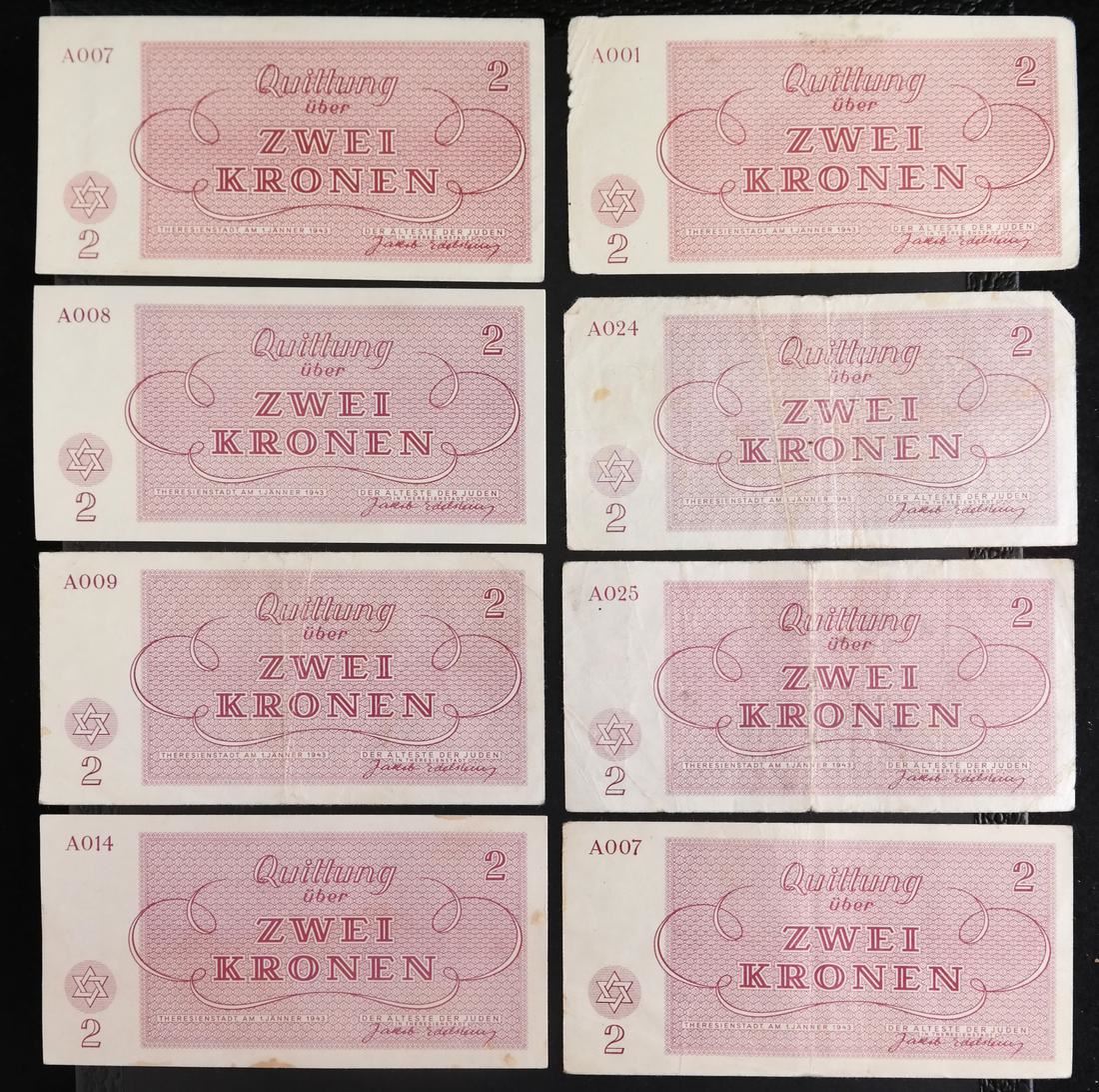 Collection showing the numerous different plate numbers used on the 2Kr notes, includes twelve (12) 2KR notes showing plates A001, A007 (2), A008, A009, A013, A014, A015, A018, A023, A024 and A025, generally sound and Fine to Uncirculated.