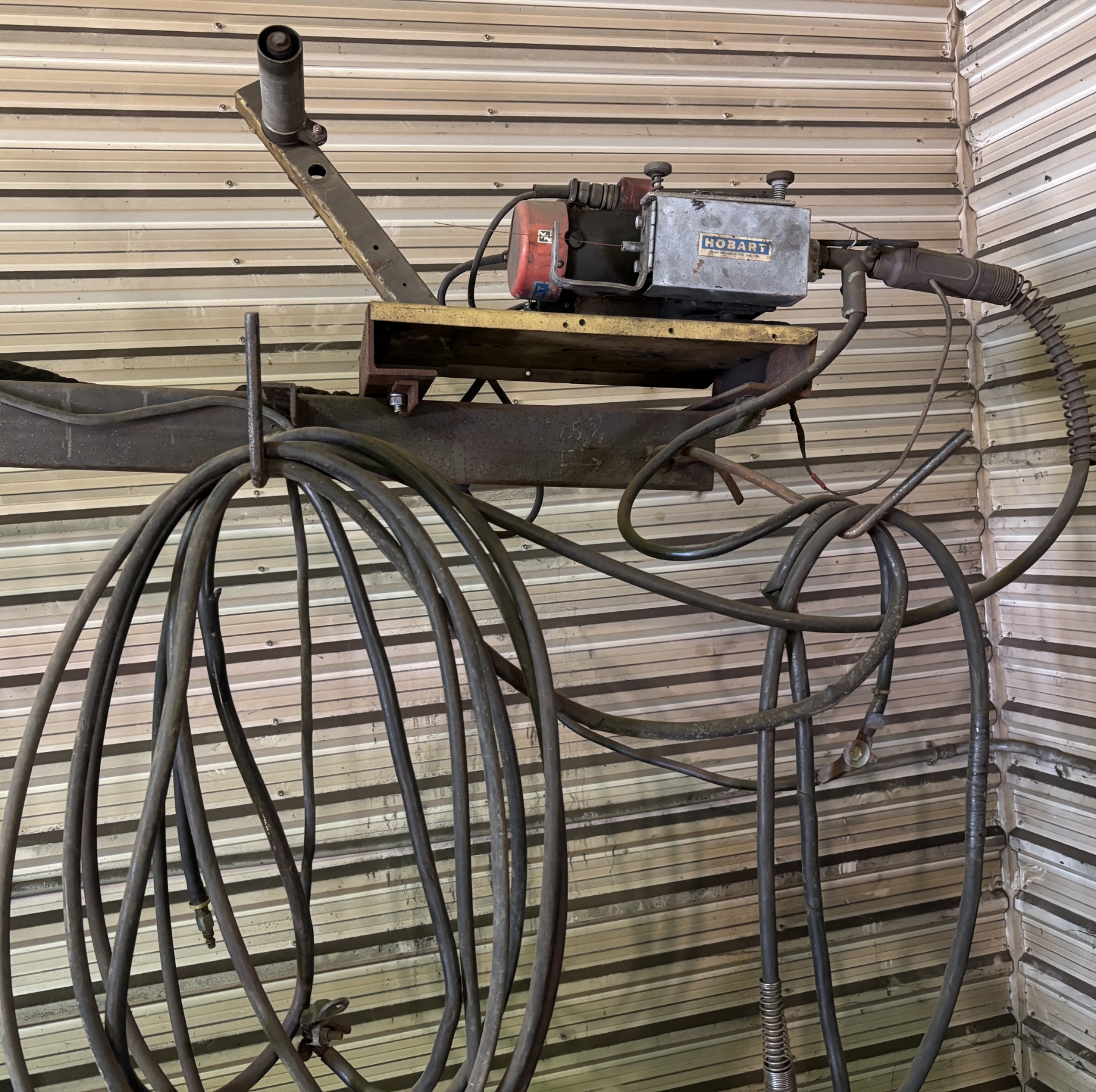 NOTE: INCLUDES 20+ FOOT SWING ARM TO REACH AROUND A SHOP. TANK NOT INCLUDED. PURCHASER TO ARRANGE REMOVAL.