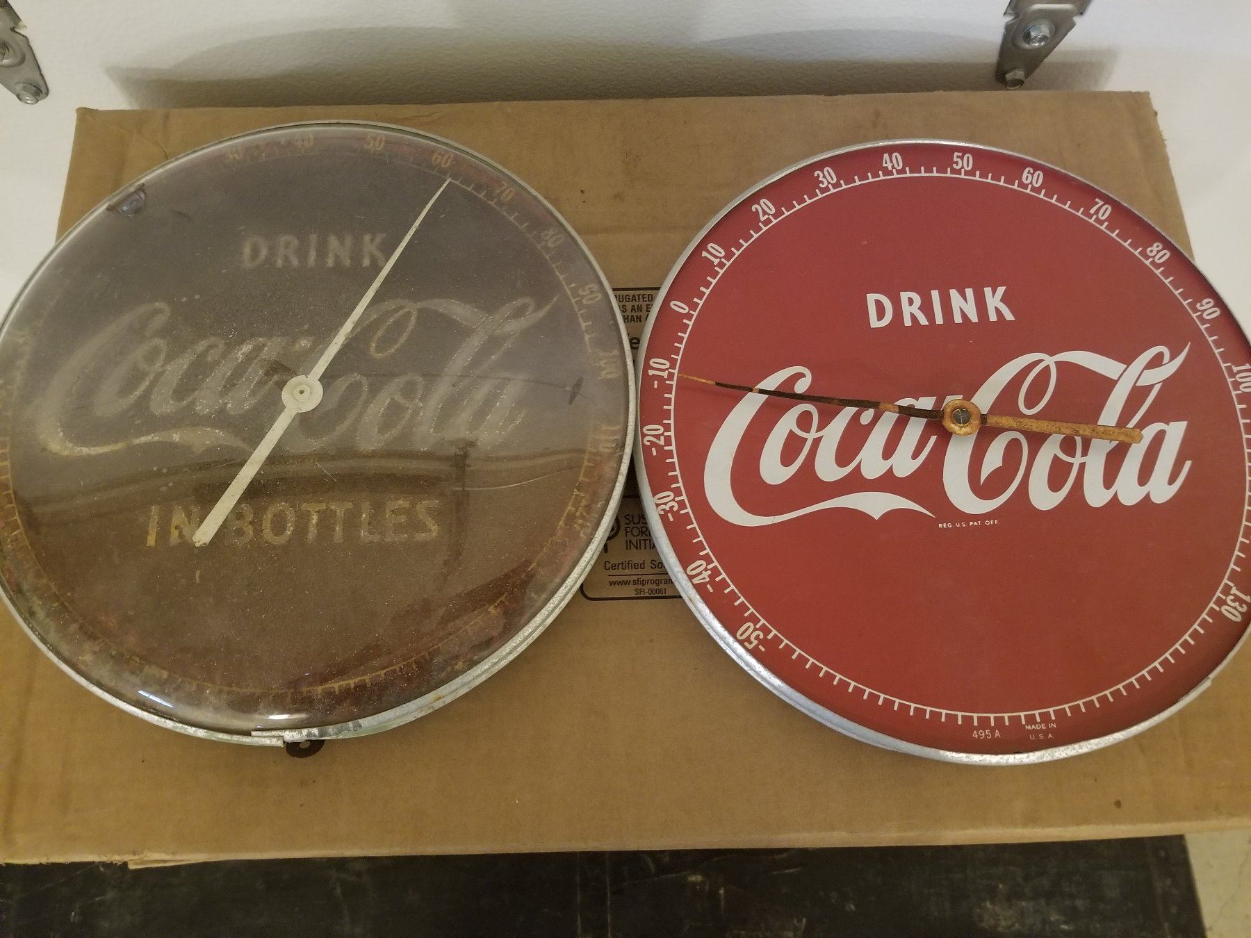 THERMOMETERS (COKE) *12 ROUND* (QTY 2) *1 WORKING, 1 GLASS, 1 GOOD FACE*