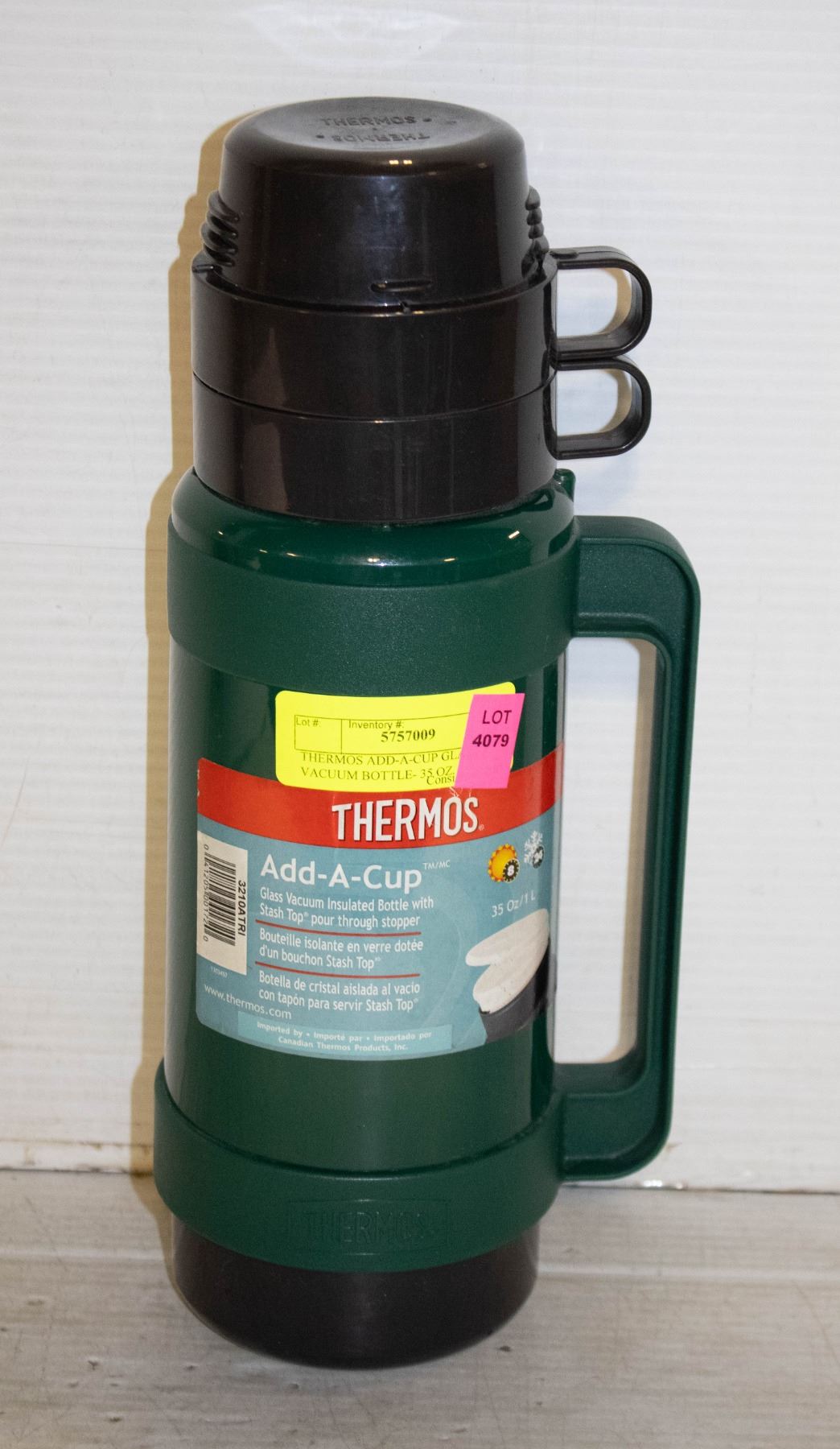 THERMOS ADD-A-CUP GLASS VACUUM BOTTLE- 35 OZ