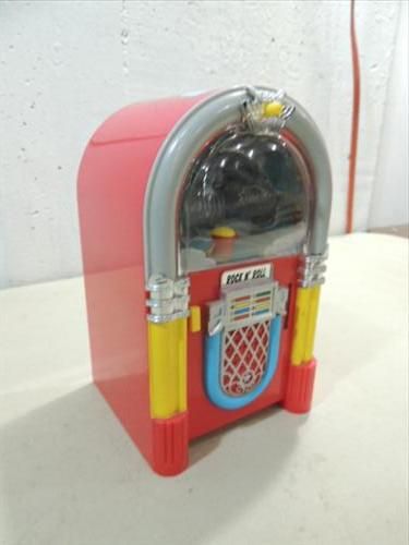 THINK WAY PLASTIC JUTE BOX ACTION COIN BANK. AS SHOWN. VIEW PICTURE FOR DETAIL.