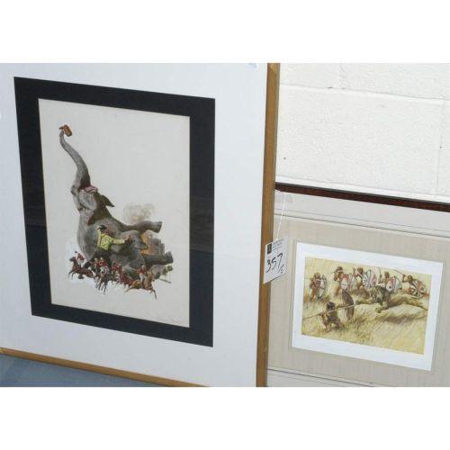 THOMAS BEECHAM, (2) original illustrations, largest 19"x13" sight w/c, CONDITION REPORT: toning on larger picture.