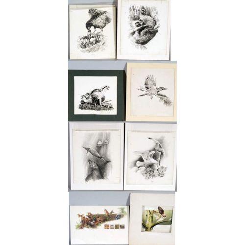 THOMAS BEECHAM, COLLECTION OF 10 SKETCHES OF WILDLIFE, pencil, pen and watercolor, the largest 9"x7", all unsigned, CONDITION REPORT: slight toning on a few. PACKING AND SHIPPING: We offer packing (double boxed in most cases) and shipping of this item within the Continental United States by USPS or UPS (our choice- boxes over 30lbs or oversized may be recalculated based on buyer's location), NOT INCLUDING INSURANCE (it will be added when we know the sales price) for $40