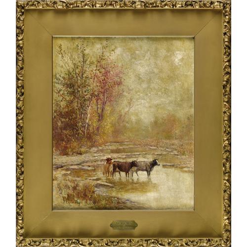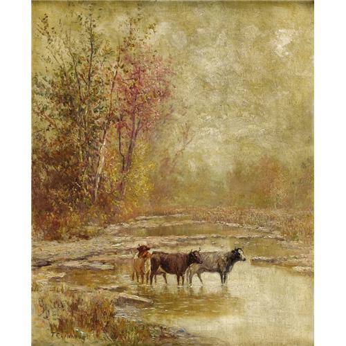 <B>THOMAS CORWIN LINDSAY</B></I> (American 1838-1907)<BR><I>Autumn</B></I><BR>Oil on canvas<BR>22 x 18 inches (55.9 x 45.7 cm)<BR>Signed lower left: <I>T.C. LINDSAY</B></I><BR><BR>Provenance:<BR>Private Collection (Dallas, Texas)<BR><BR> <B>Condition Report:</B> Old relining, some surface dirt, surface intact, never been cleaned or significantly restored<BR><BR><b>Shipping:</b> Requires 3rd Party Shipping (<a target="_blank" href="http://www.heritageauctions.com/common/shipping.php">view shipping information</a>)
