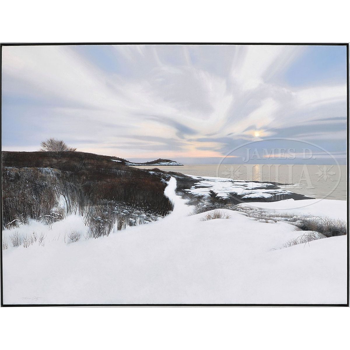 Oil on canvas Housed in its original thin silver gilt shadow box type wood frame, retaining a Frost Gully Gallery label on verso Signed lower left "Thomas Crotty" Note: This is considered to be one of the very finest examples of this contemporary Maine painter's work. The consignor purchased this painting directly from the artist a few years ago for $50,000. The entire hammer price for this lot is being donated to the Portland Museum of Art -- a very noble and generous gesture on behalf of the consignor; please consider this beautiful painting and the worthwhile cause your purchase will support. SIZE: 36" x 48". Overall: 37" x 49". CONDITION: Very good to excellent. 9-90388