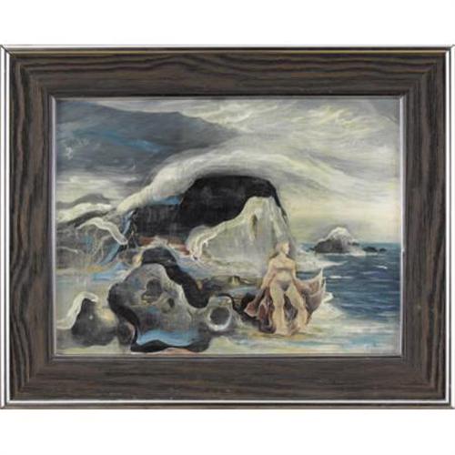 <B>THOMAS DUNCAN BENRIMO (American, 1887-1958)</B></I><BR><I>Nymph by the Sea</B></I><BR>Oil on board<BR>14 x 17 inches (35.6 x 43.2 cm)<BR>Signed lower right: <I>Benrimo</B></I><BR> <B>Condition Report:</B> Overall good condition.<BR><BR><b>Shipping:</b> Requires 3rd Party Shipping (<a target="_blank" href="http://www.heritageauctions.com/common/shipping.php">view shipping information</a>)