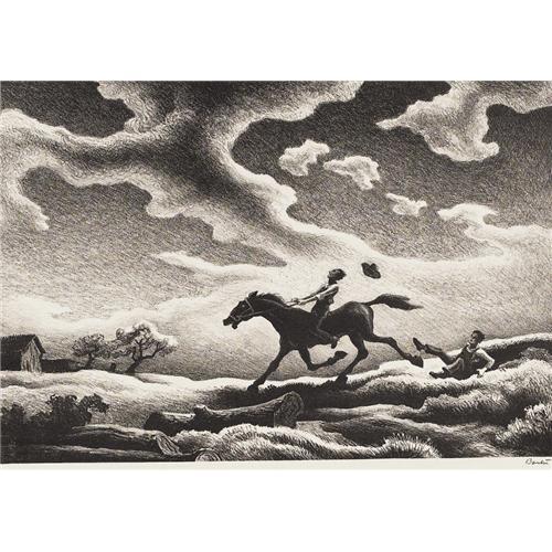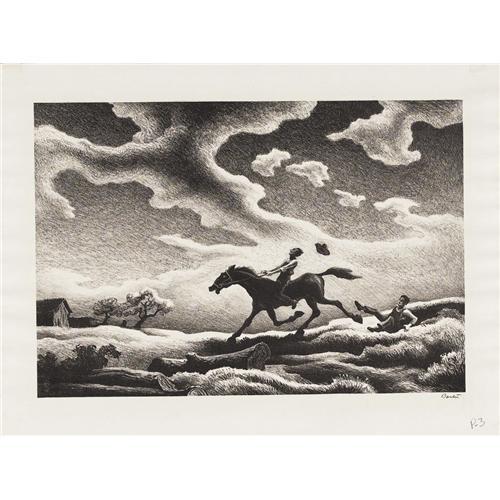 <B>THOMAS HART BENTON</B></I> (American 1889-1975)<BR><I>Spring Tryout,</B></I> 1943<BR>Lithograph<BR>9-3/8 x 13-5/8 inches (23.81 x 34.60 cm)<BR>Ed. 250<BR>AAA, pub.<BR>Signed lower left in the plate and lower right in pencil: <I>Benton</B></I><BR>Cat. Rais.: Fath, 61<BR><BR>Provenance:<BR>Bessie Heard (McKinney, Texas);<BR>Bessie Heard Trust <B>Condition Report:</B> Very minor toning; wrinkles in left and right margins; vestiges of mounting tape on top corners<BR><BR><b>Shipping:</b> Requires 3rd Party Shipping (<a target="_blank" href="http://www.heritageauctions.com/common/shipping.php">view shipping information</a>)