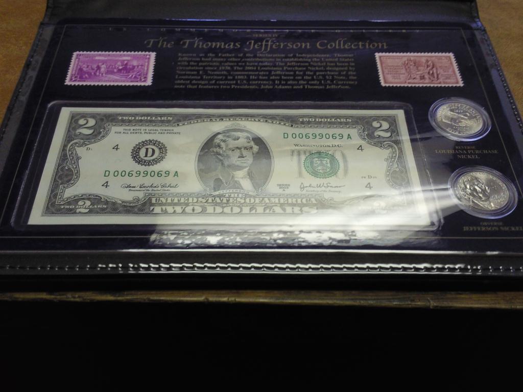 UNC $2 NOTE, 2 UNC NICKELS AND 2 UNC STAMPS
